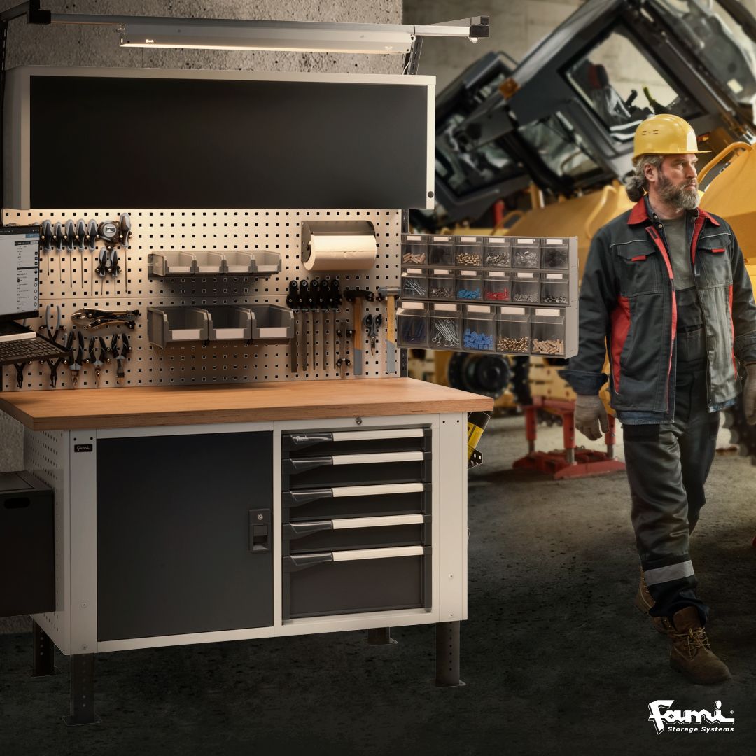 Siamo specializzati nell'allestimento e adattamento degli arredi per officine, dalle scaffalature ai materiali di consumo e di magazzinaggio.